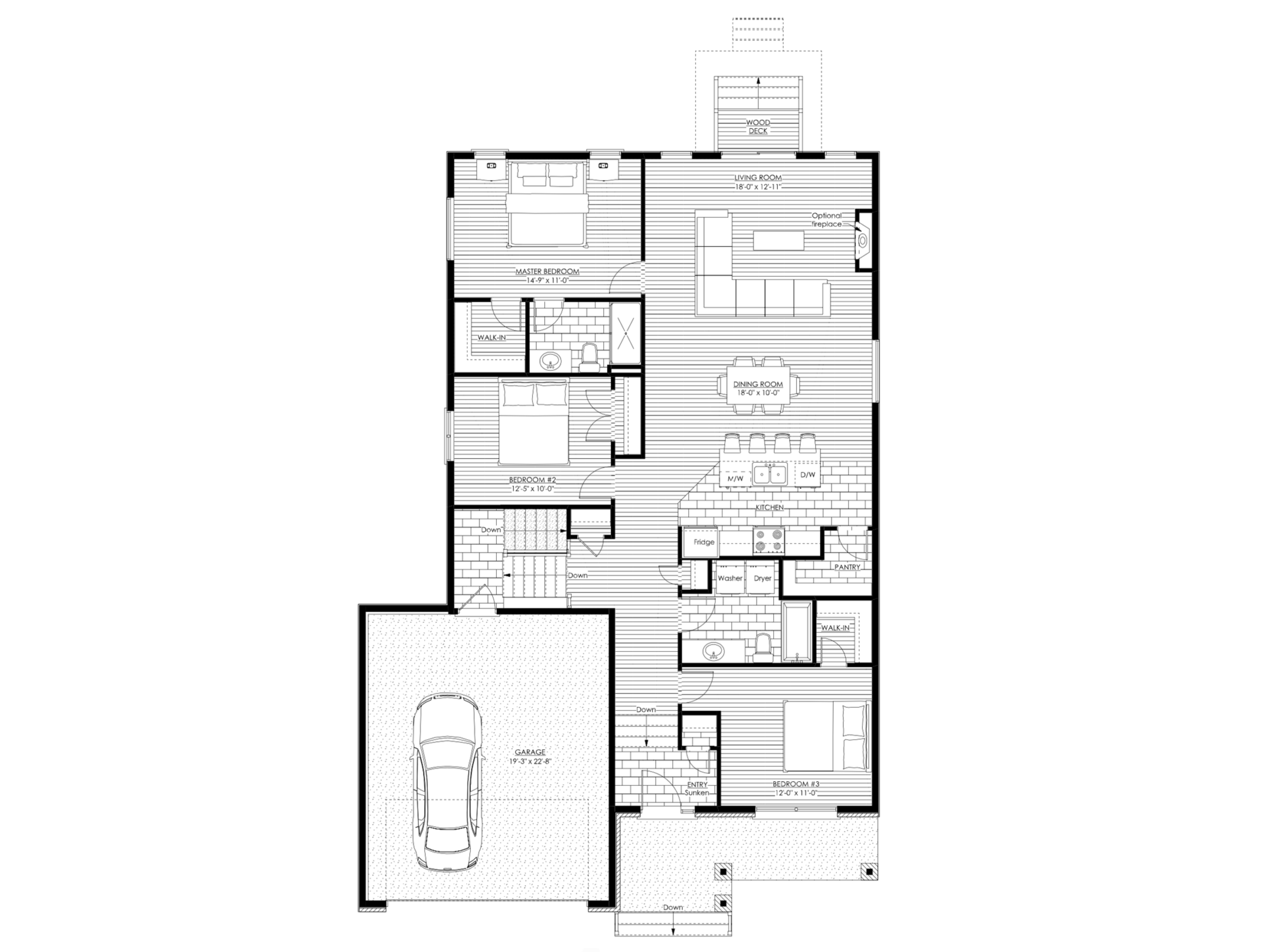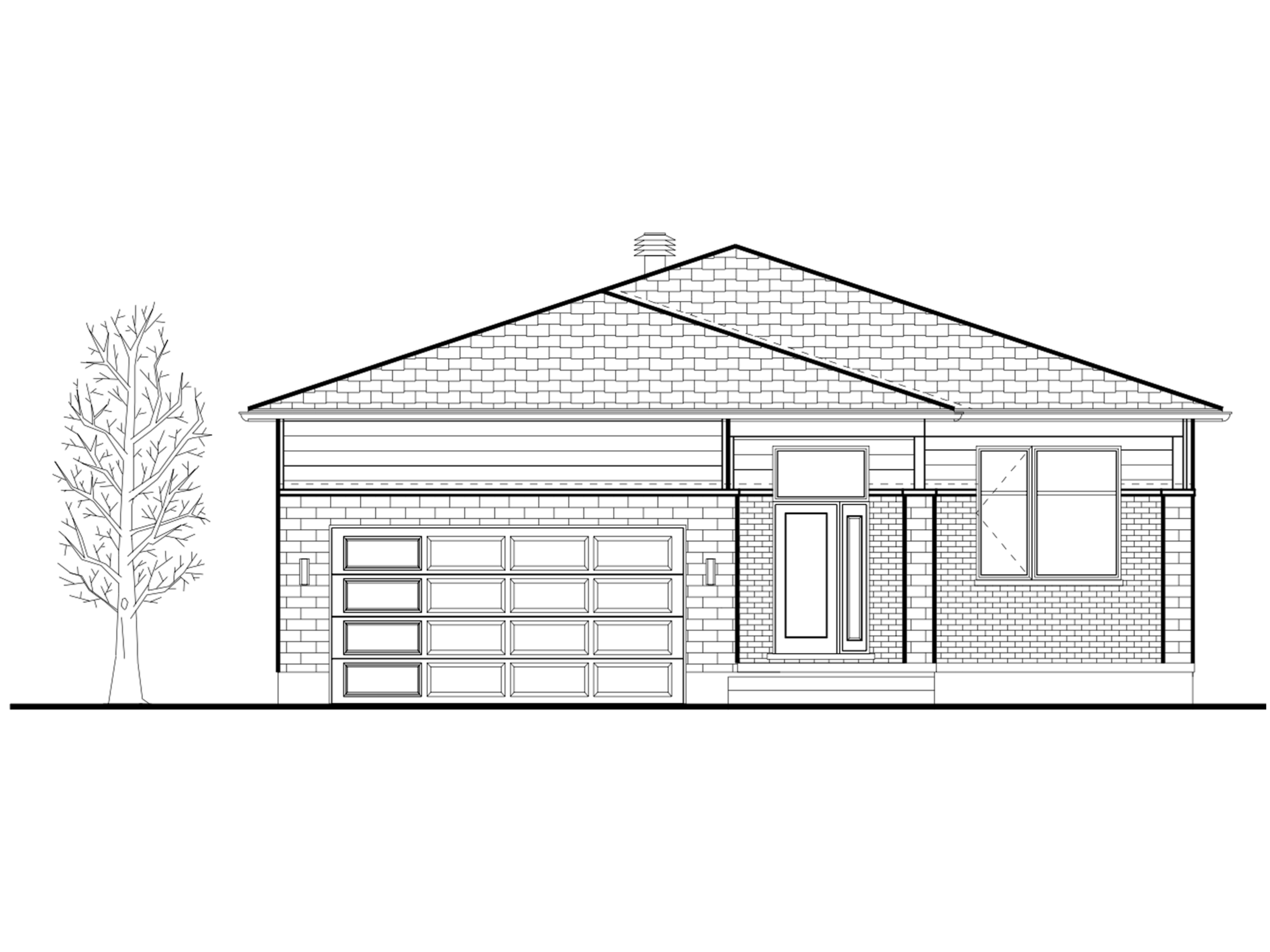 Les modèles de plain-pied Piedmont offrent des interprétations distinctes du charme rustique et de la sophistication contemporaine. Le style farmhouse présente un toit à pignon prononcé, un revêtement à planches et lattes et une base en brique, offrant une esthétique campagnarde chaleureuse et classique. Le style moderne se distingue par un toit plat, un revêtement horizontal lisse, un travail de brique aux lignes épurées et un accent de bois naturel, lui conférant une allure urbaine et raffinée tout en conservant la chaleur grâce aux matériaux naturels. Les deux maisons sont de plain-pied, disposent d’un garage double orienté vers l’avant et d’un porche couvert, ce qui les rend idéales pour une vie de banlieue accessible et élégante.