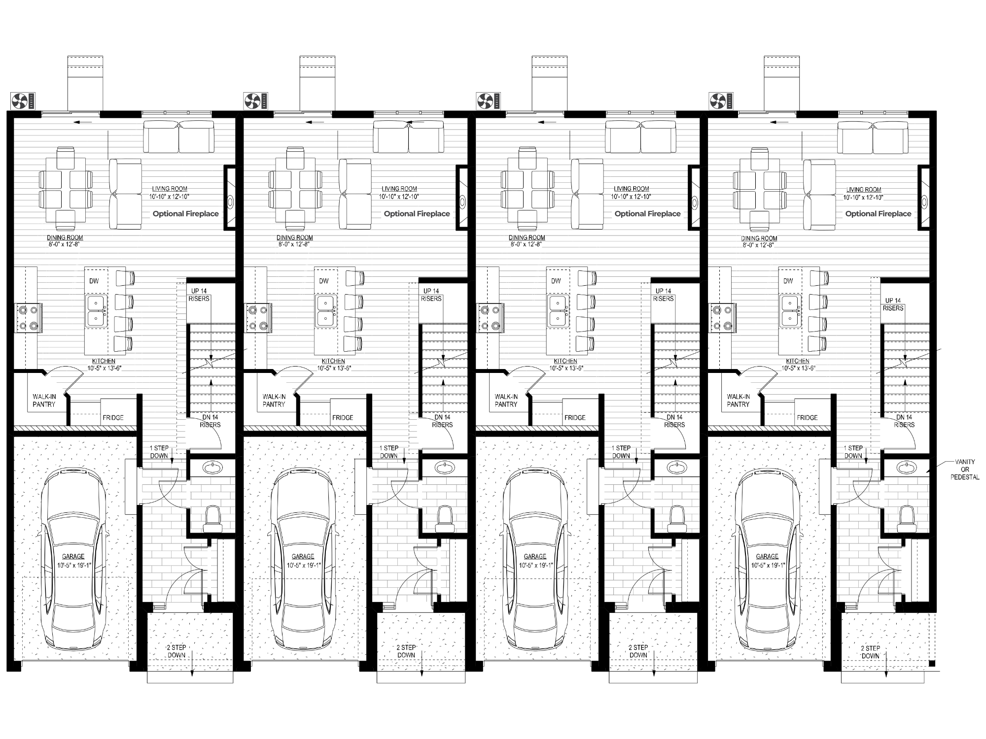 Les maisons de ville Opal présentent une façade épurée et symétrique avec des pignons à forte pente, un revêtement vertical et des lucarnes en option, conférant à la maison un style de ferme moderne et une présence architecturale audacieuse. Parmi les principales caractéristiques, citons des fenêtres à cadre noir pour le contraste, des garages individuels intégrés avec des panneaux minimalistes et des vérandas couvertes avec des touches de bois. L'uniformité des unités assure une cohésion visuelle, ce qui les rend idéales pour les développements suburbains alliant style, efficacité et vie communautaire. Disponibles dans des palettes de couleurs claires et foncées contrastantes.