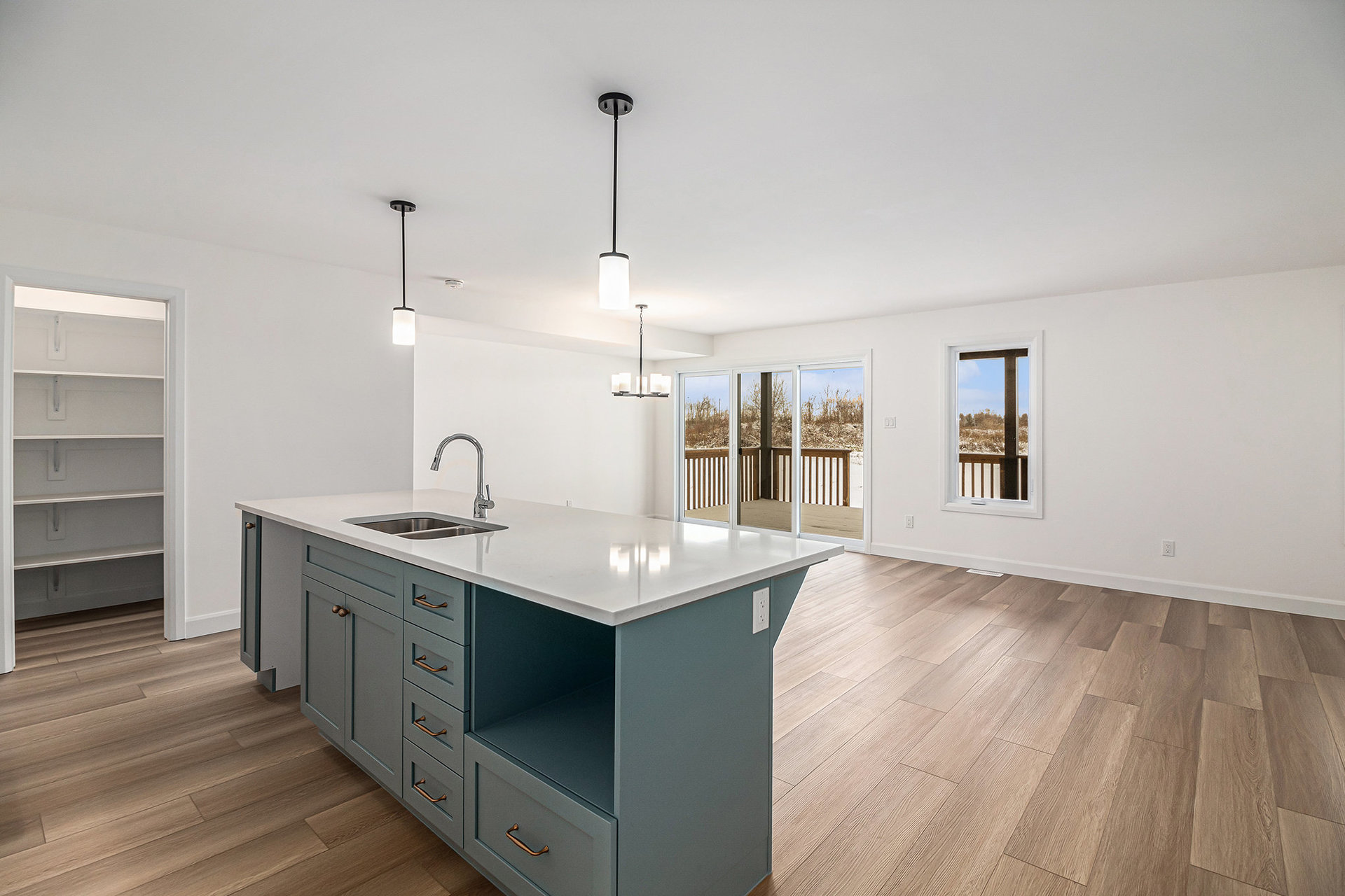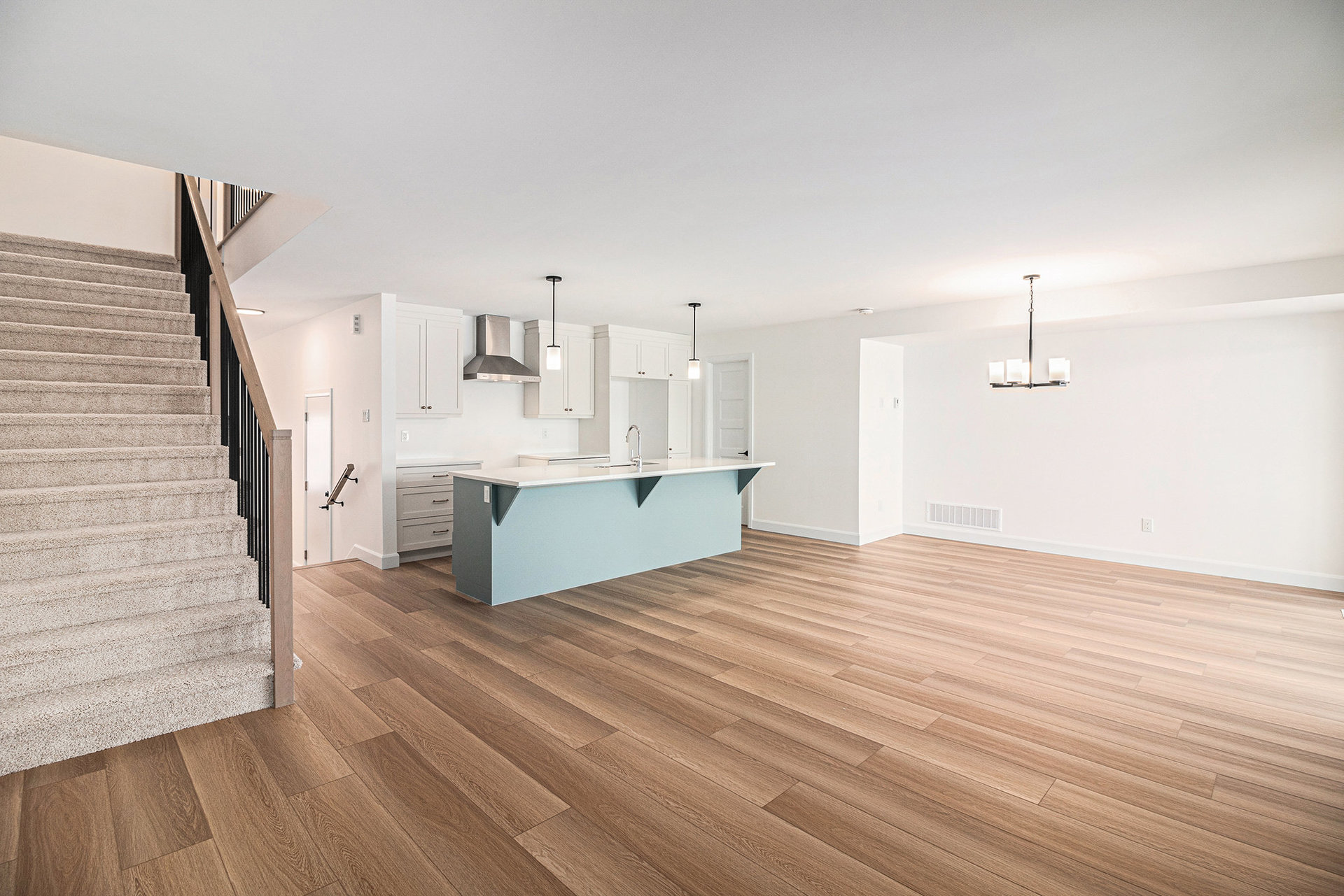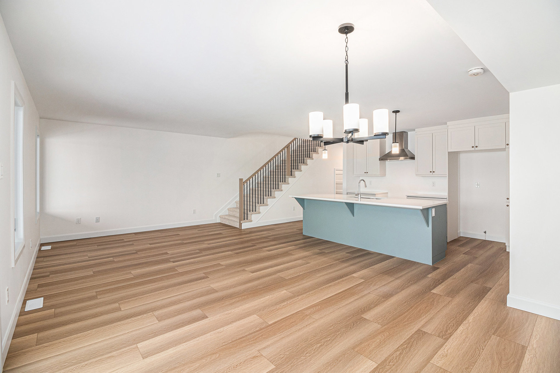 Le rez-de-chaussée offre un concept à aire ouverte, parfait pour recevoir et pour la vie quotidienne. La magnifique cuisine est dotée d'un îlot de 2,7 m avec comptoir-lunch, de nombreux rangements et d'un garde-manger, alliant fonctionnalité et style. Un revêtement de sol en vinyle de luxe s'étend dans l'entrée, le salon, la salle à manger, la cuisine, la salle de bain et le corridor, tandis qu'un tapis moelleux apporte du confort aux chambres à l'étage.